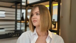 O Blunt cut é um estilo que se destaca especialmente em suas versões mais curtas, adicionando um charme único ao visual. Caracterizado por suas linhas retas e uniformes, este corte é conhecido por sua simetria perfeita, que pode ser ainda mais realçada ao ser usado com uma divisão ao meio.